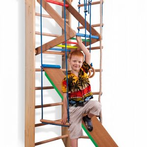 Спортивный уголок «Sport 3-240». Комплектация Спортивный уголок «Sport 3-240» 1. Шведская стенка с турником. 2. Канат. 3. Кольца. 4. Трапеция. 5. Веревочная лестница. 6. Детский сьемный турник-рукоход. 7. Доска для преса.. А так же крепежный комплект.