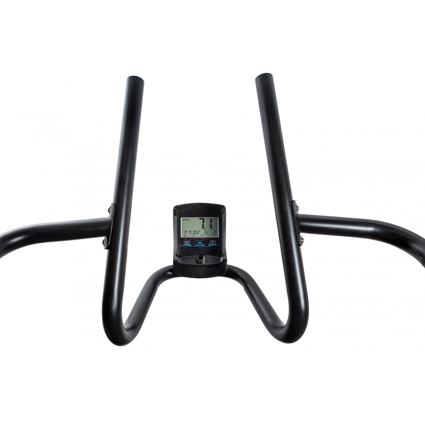 Необходимые параметры тренировки отслеживаются с помощью дисплея: продолжительность бега, дистанция, скорость, потраченные калории.
