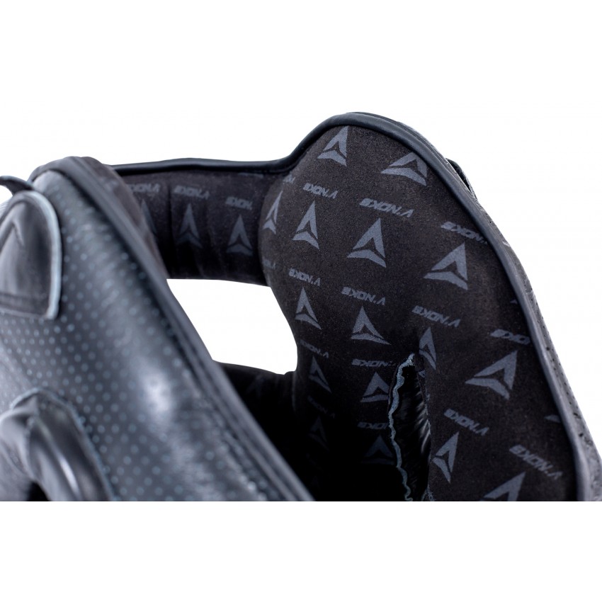 Боксерский шлем с бампером Boxing Machine PRO от торговой марки V`Noks (Винокс) с наивысшей степенью защиты и удобным углом обзора изготовлен вручную. Внешняя часть выполнена из кожи NAPPA самого высокого качества, а внутренняя поверхность шлема – из абсорбирующей ткани.