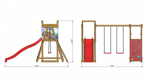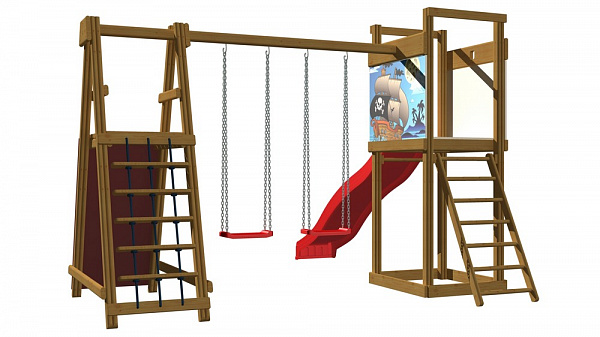 Комплектация Детская площадка SportBaby-6: 1. Детская горка длина – 3 метра (красная, синяя, зеленая, желтая). 2. Площадка с лестницей. 3. Качели 2 шт. (красные, зеленые) или деревянные. 4. Площадка со скалолазкой и гладиаторской сеткой. Возможно изготовление по индивидуальным размерам в различной комплектации и цветовой гамме. Производитель оставляет за собой право вносить в конструкцию изменения, не ухудшающие эксплуатационные характеристики изделия.