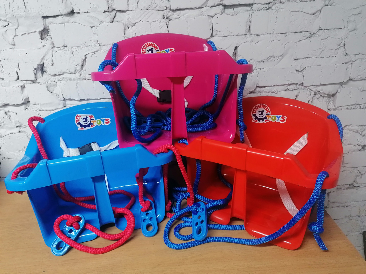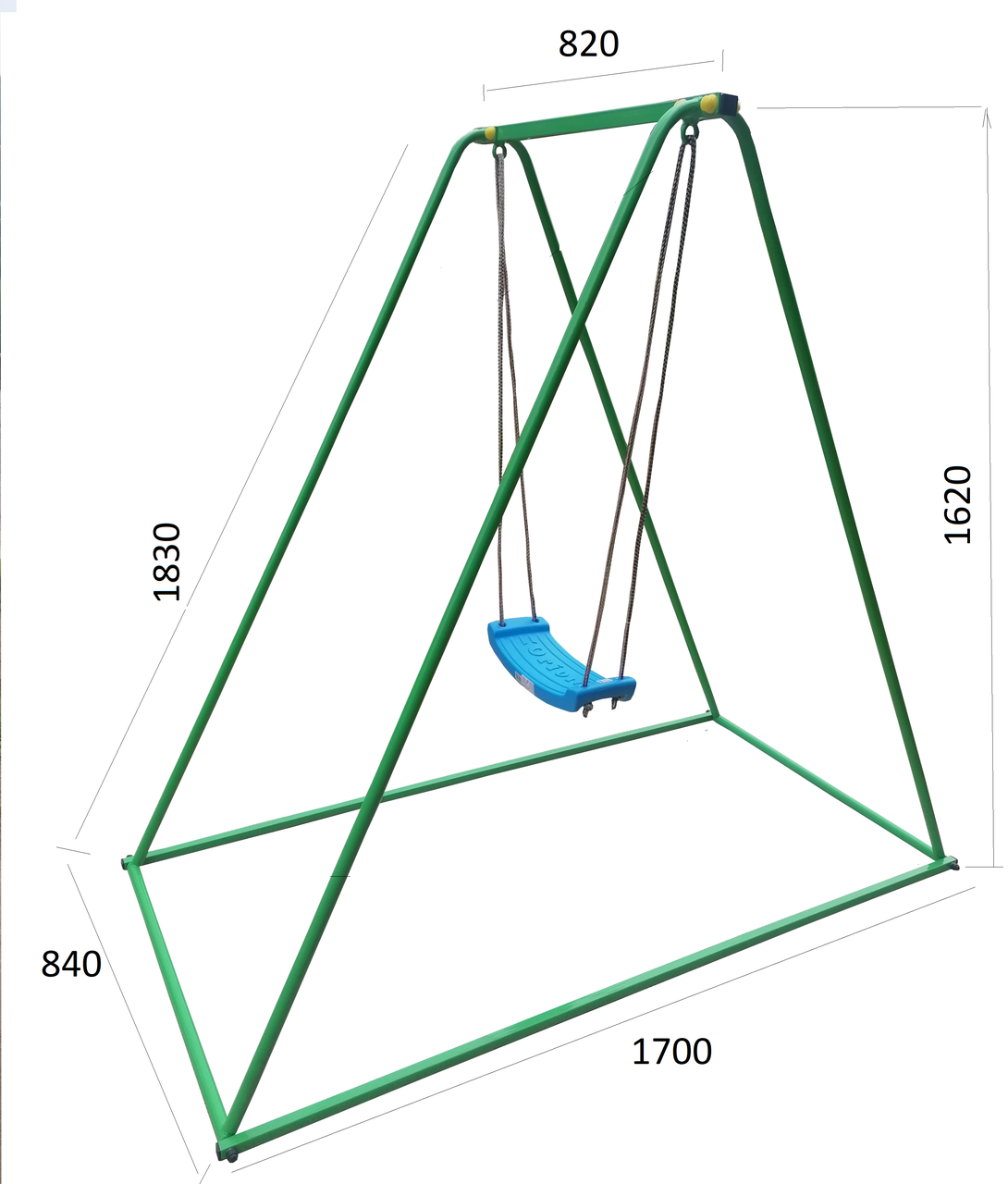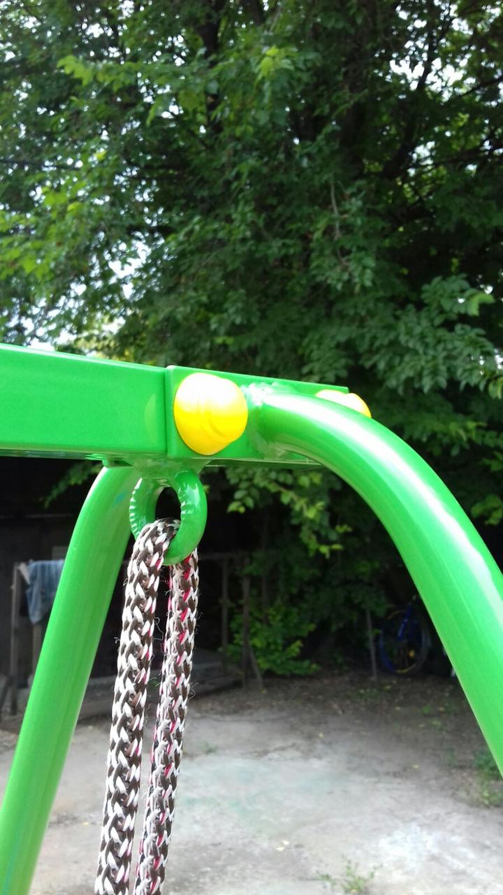 Качели это самое распространённое развлечение у детей. В сидении со спинкой предусмотрена поперечная перекладина, которая обеспечивает безопасность во время качания, ортопедическая спинка, подлокотники, а также ремнем безопасности.
