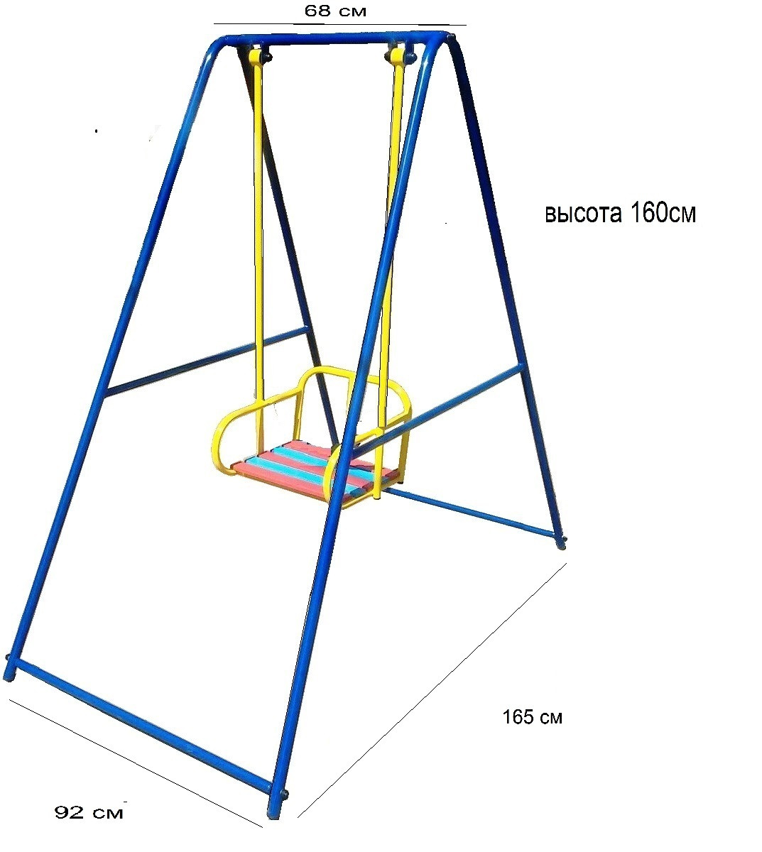 Параметры: высота 160 см, ширина вверху (перекладина качелей) 68 см,