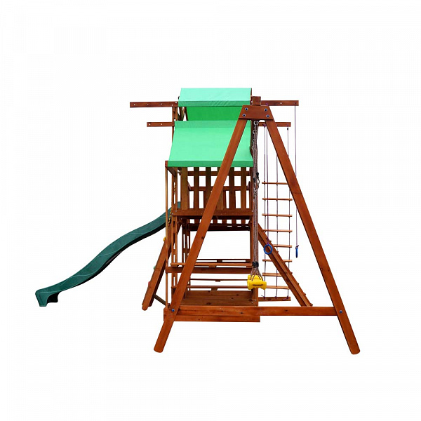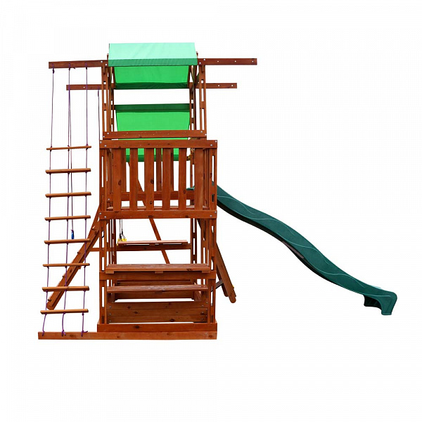 Детский игровой комплекс для дачи – идеальное место для отдыха ребенка. Такая яркая и оригинальная конструкция сделает досуг детей веселым и полезным. Она является безопасной и надежной, а также отвечает самым высоким стандартам качества. У нас детский игровой комплекс для дачи купить можно по выгодной цене. Более того, это не только место для игр, но и целый набор спортивных элементов, где ребенок будет получать полноценную физическую нагрузку. Снаряд представляет собой двухэтажную спортивно-игровую площадку, где есть все необходимое, чтобы малыш физически развивался и активно отдыхал: трехметровая горка для катания, 2 качели, кольца и горка для скалолазания. Есть также деревянная и веревочная лестница. Снаряд изготовлен из сосны, обработанной антисептиком, а все поверхности изделия тщательно отшлифованы. Благодаря высокому качеству и функциональности, на детский игровой комплекс для дачи отзывы положительные и он пользуется большим спросом. Сооружения не требует дополнительного крепления. Данная площадка действительно станет настоящим украшением любого двора. Здесь для любого ребенка найдется занятие и развлечение. Если Вас устраивает на детский игровой комплекс для дачи цена , мы очень рекомендуем приобрести его, так как это самый лучший подарок для детей. Этот снаряд подарит приятные эмоции каждому ребенку и даст возможность быть здоровым, сильным и активным.