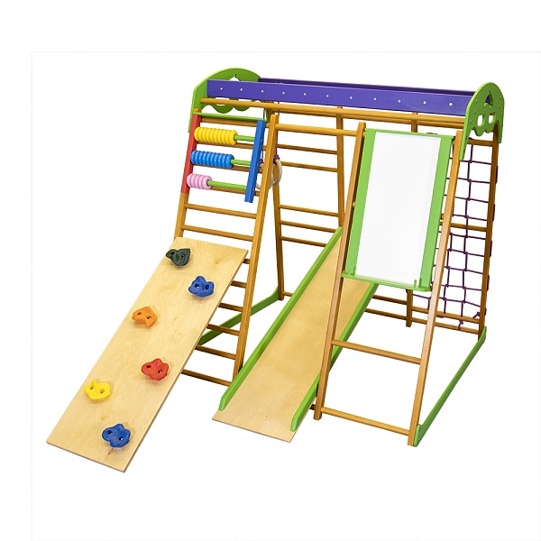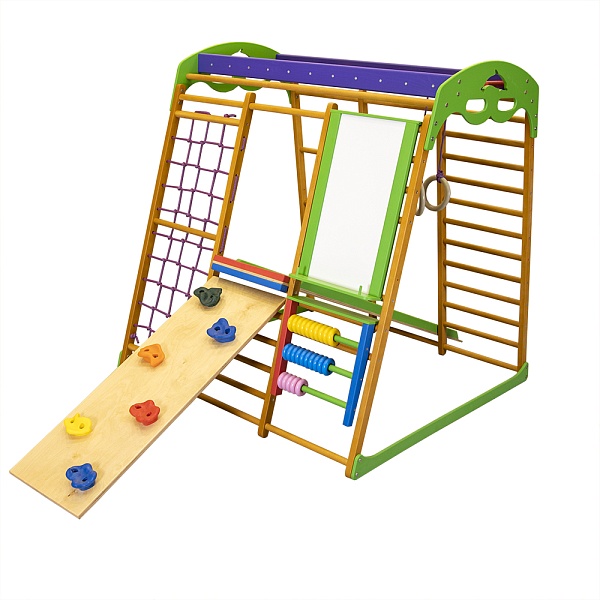 Всем родителям хочется видеть своих малышей здоровыми и жизнерадостными, прекрасно подготовленными физически, активными, ловкими и смышлеными. Для достижения этой цели Вам просто необходимо установить в детской комнате этот , предназначенный для игр и занятий спортом детей в возрасте от 5-6 месяцев и до 6-7 лет. Детям очень сильно понравится данная конструкция, так как здесь они смогут не только выполнять физические упражнения, но и играть со счётами, рисовать на мольберте. Одним словом, интерес к такой конструкции у малыша угаснуть просто не сможет.