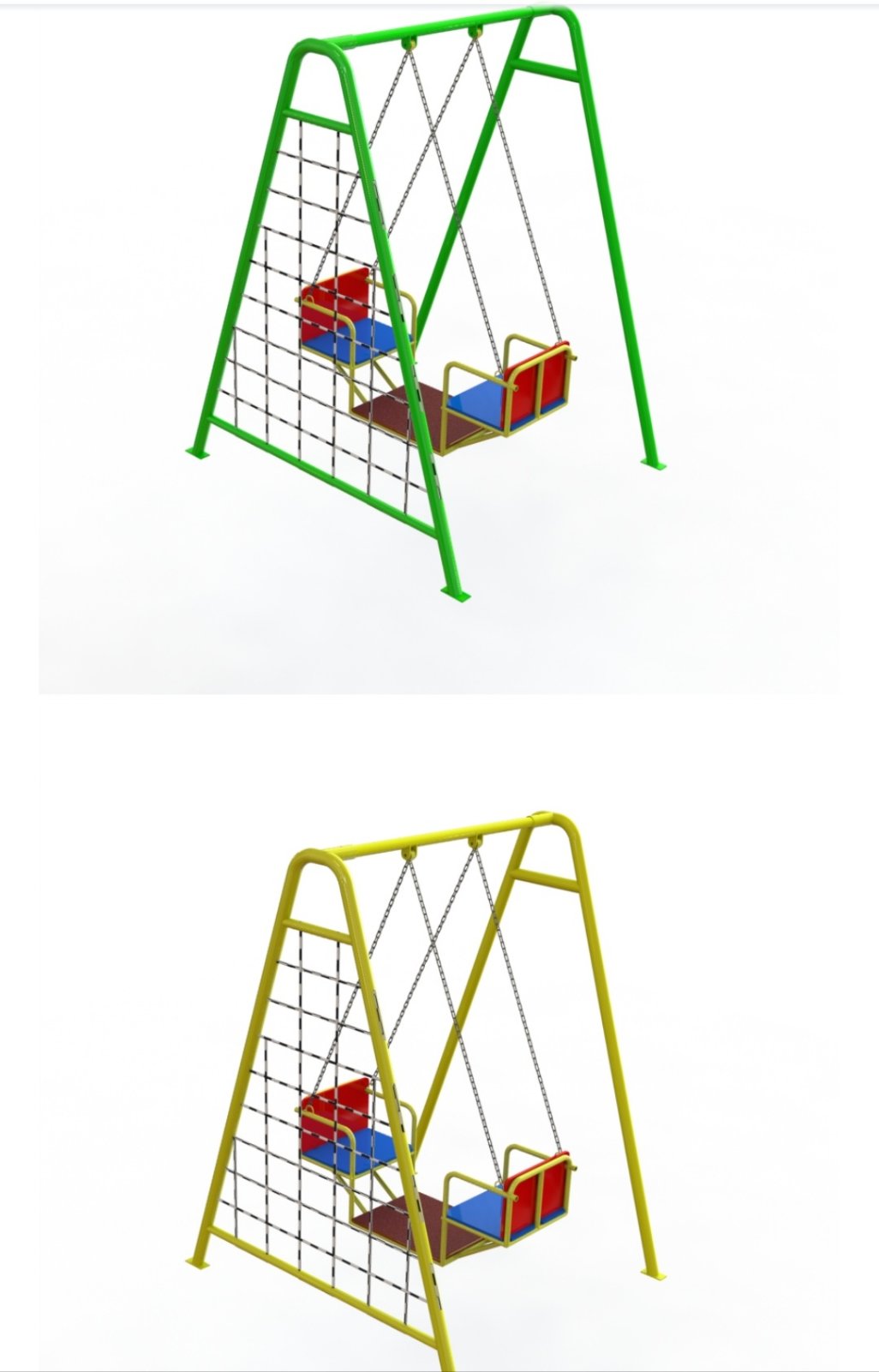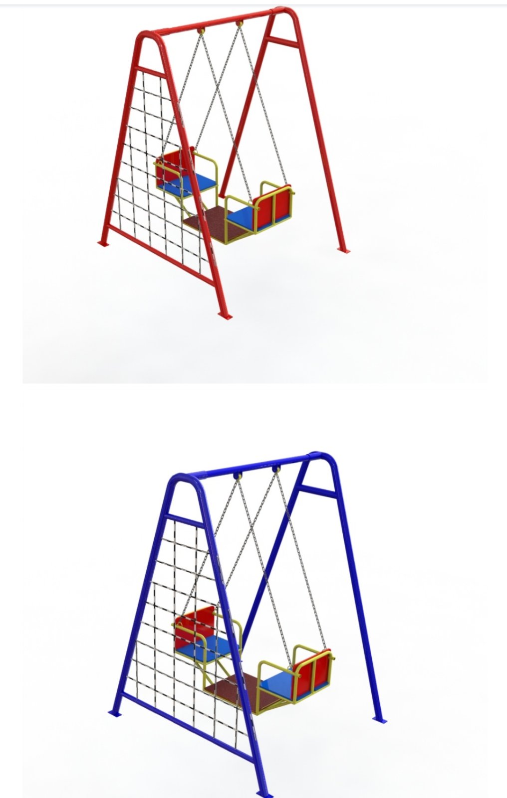 Комплектация: качели на цепях для двух детей, баскетбольное кольцо, гладиаторская сетка, дартс, комплект крепежей для бетонирования.