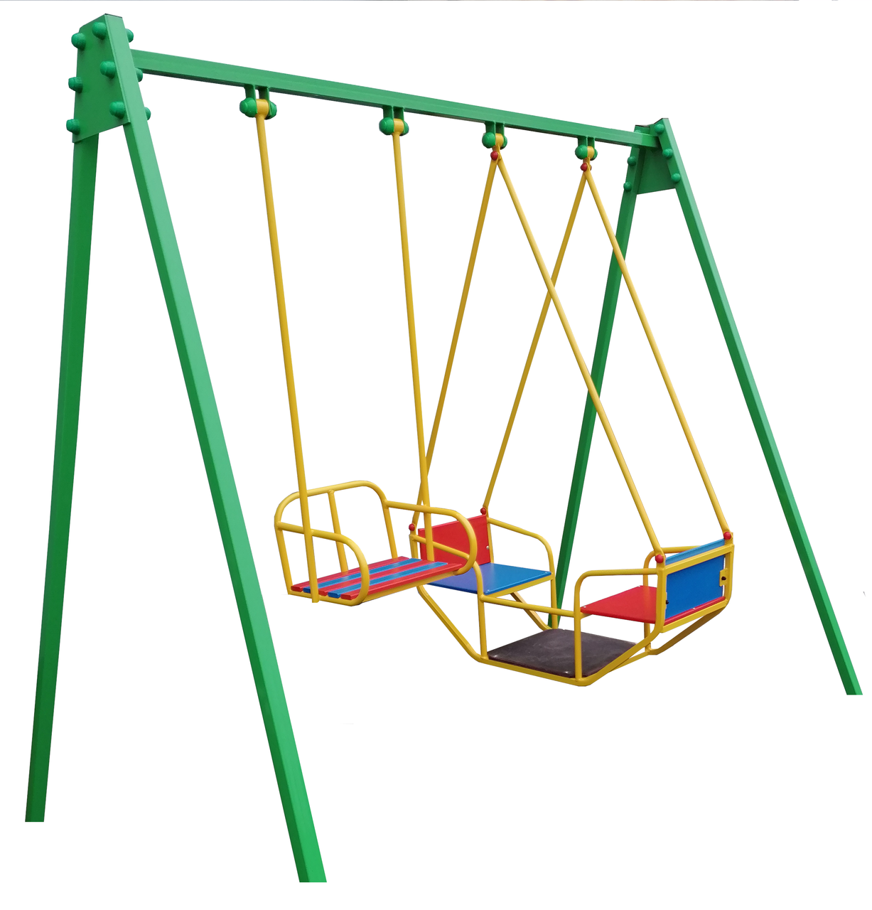 Детские качели, трёхместные, на подшипниках, на жесткой подвеске.