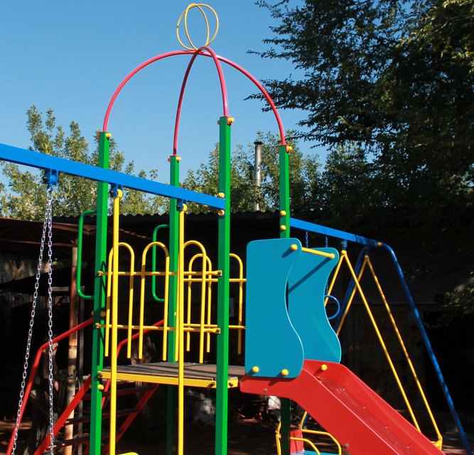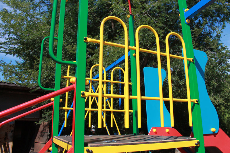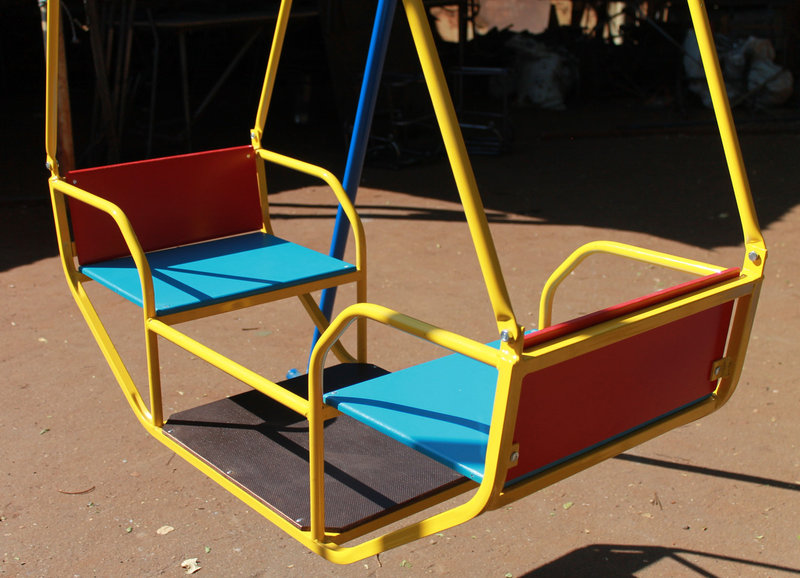 – три качели: лодочка двухместная, одно сидение на цепях и одно на жесткой сцепке,