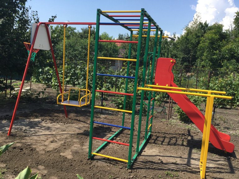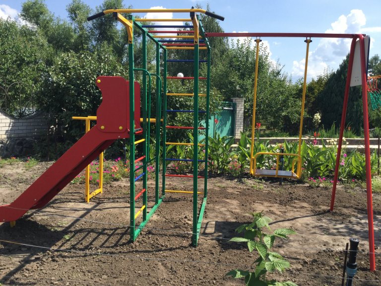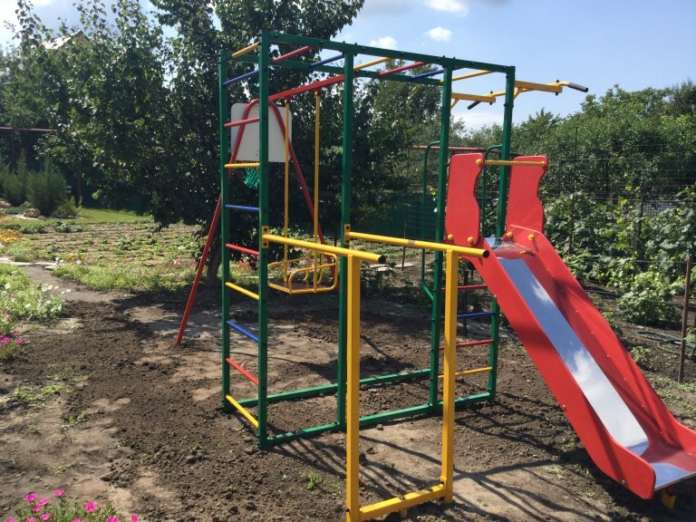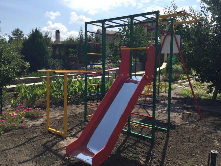 Ширина турника ― 115 см, длина и ширина горки 200х50 см,