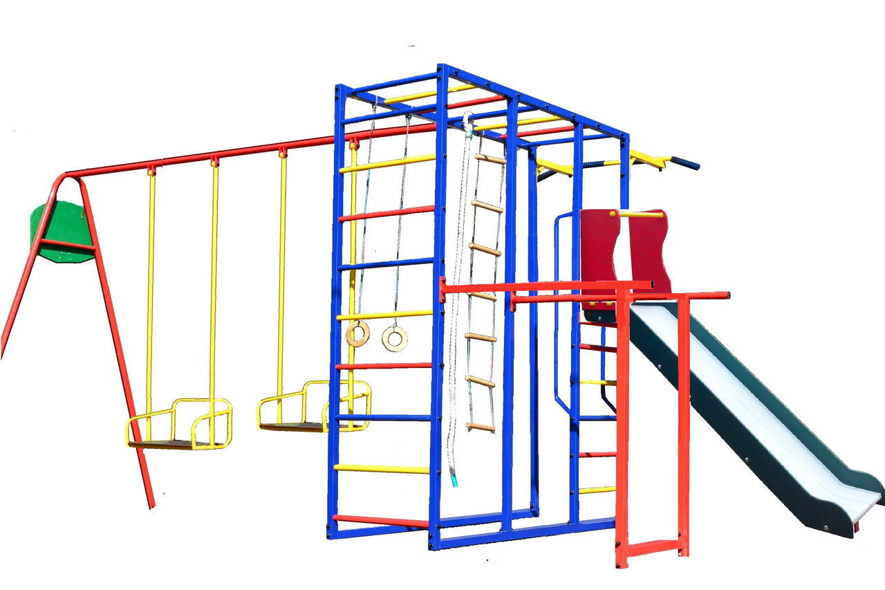Комплекс спортивно-игровой с горкой и двумя качелями, уличный.