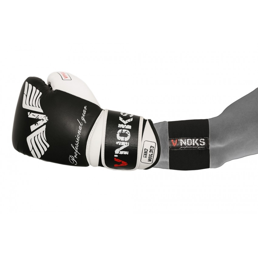 Специально для таких случаев, компания V`Noks разработала простое решение – манжеты для боксерских перчаток V`Noks EXO (Винокс). Обеспечивает надежную дополнительную фиксацию на запястье. Изготовлены из широкой плотной резинки, комфортно обтягивает перчатку. Просты в использовании. Выполнены в лаконичном черном цвете, брендированы логотипом V`Noks (Винокс). Благодаря этому, отлично смотрятся на разных моделях боксерских перчаток.