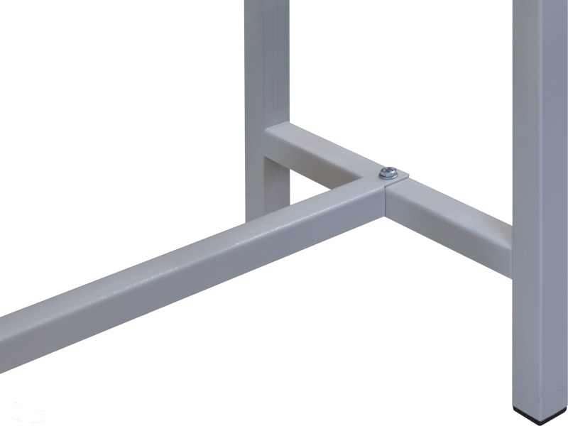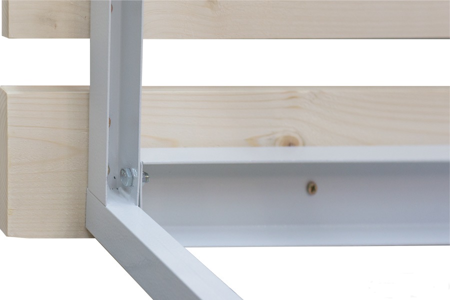 Каркас скамейки изготовлен из высококачественной профильной трубы и имеет сварную конструкцию. Покрывается каркас порошковой краской светло-серого цвета (RAL 7035), а деревянная часть – бесцветным лаком. Скамейка приставная может комплектоваться пластиковыми либо противоскользящими подпятниками. Высота скамейки адаптирована под рост среднестатистического человека и соответствует стандартам. В случае повреждения какого-либо элемента приставной скамейки – благодаря модульной конструкции – его можно заменить на новый.