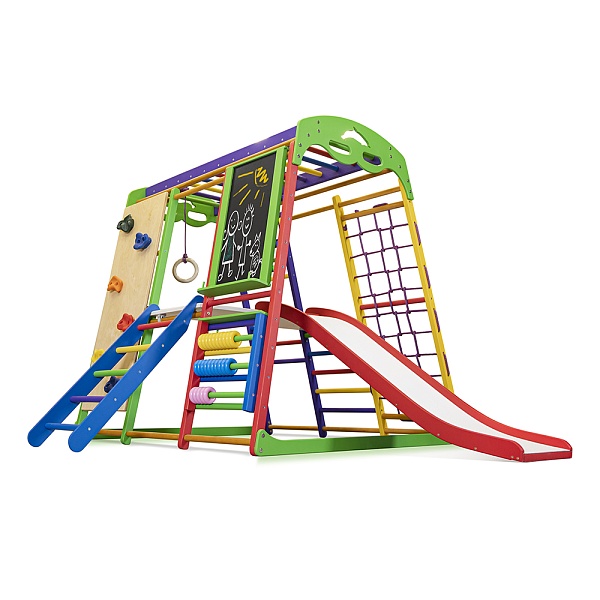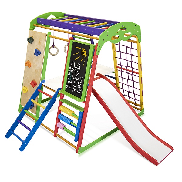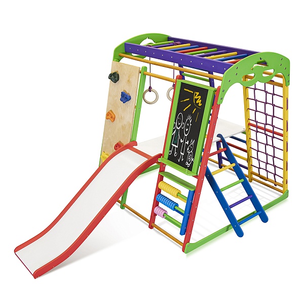 Для того, чтобы малыш правильно развивался, ему нужна физическая активность. К счастью, все дети по своей природе энергичны и всегда находятся в движении. Необходимо позаботиться о том, чтобы ребенок со временем не потерял свою динамичность и всегда занимался спортом. Для этого можно спортивный комплекс для дома Юнга Plus 5 купить и поставить в том помещении, где обычно играют дети. Он также будет уместным в квартире или во дворе загородного дома. Спорткомплекс “Юнга Plus 5” предоставляет массу возможностей малышам. Здесь можно и заниматься спортом, и рисовать на мольберте, и даже обучаться основам математики с помощью цветных счетов. И самое главное, это не будет вызывать скуку у ребенка, так как все элементы отличаются яркими и насыщенными цветами. А чего только стоит шведская стенка, которая предоставляет массу возможностей? Благодаря этому снаряду, ребенок получит нагрузку на все группы мышц, ему также будет очень интересно залезть по ней наверх и слезть обратно, это своего рода достижение для малыша. Кроме того, здесь имеется такое оборудование как гладиаторская сетка, рукоход, горка, кольца ,скалолазка и столик с лестницей. На спортивный комплекс для дома Юнга Plus 5 цена выгодная и приятно Вас удивит. Размеры снаряда компактные: высота – 130 см, ширина – 124 см, а весит всего 42 кг. Данный многофункциональный тренажер способен прослужить долгое время. Занятия на таком снаряде будут интересны малышу, начиная с полугода. С его помощью ребенок будет расти и всесторонне развиваться. Чтобы оставить на спортивный комплекс для дома Юнга Plus 5 отзывы , воспользуйтесь специальной формой на нашем сайте. Приучайте своего кроху к активному образу жизни с ранних лет, чтобы он был крепким, сильным и здоровым.