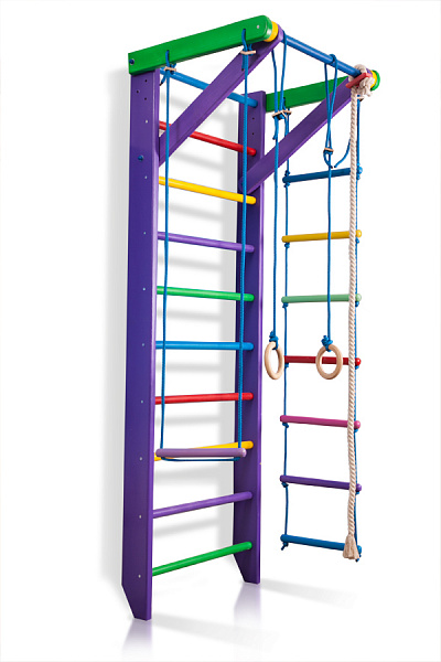 Комплектация Спортивный уголок «Карусель 2-220» 1. Шведская стенка с турником. 2. Канат. 3. Кольца. 4. Трапеция. 5. Веревочная лестница. А так же крепежный комплект. Для безопасности рекомендуем купить мат гимнастический. Детский спортивный уголок поставляется в разобранном виде.