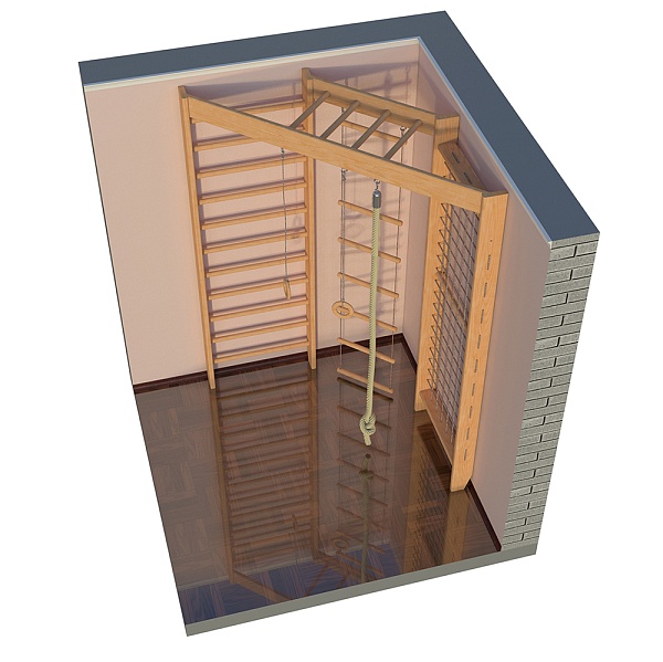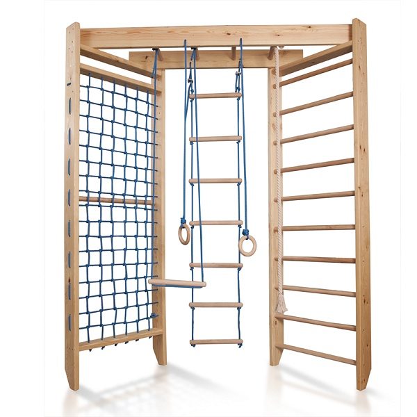 Спортивная стенка для детей «Sport 4-240» – модель, дающая возможность обустроить полноценный, хоть и небольшой спортивный зал даже в довольно маленькой квартире. Такая стенка обязательно станет любимым местом для игр Вашего ребёнка и его друзей, позволяя им развивать гибкость, ловкость, силу и координацию движений, что, само собой, будет способствовать укреплению организма малыша и общему его оздоровлению. Выполнена данная стенка из прочного экологически безопасного материала, выдерживающего значительные нагрузки. Состоит модель из нескольких секций – гладиаторской сетки, шведской стенки, поперечных перекладин, гимнастических колец, и верёвочной лестницы.
