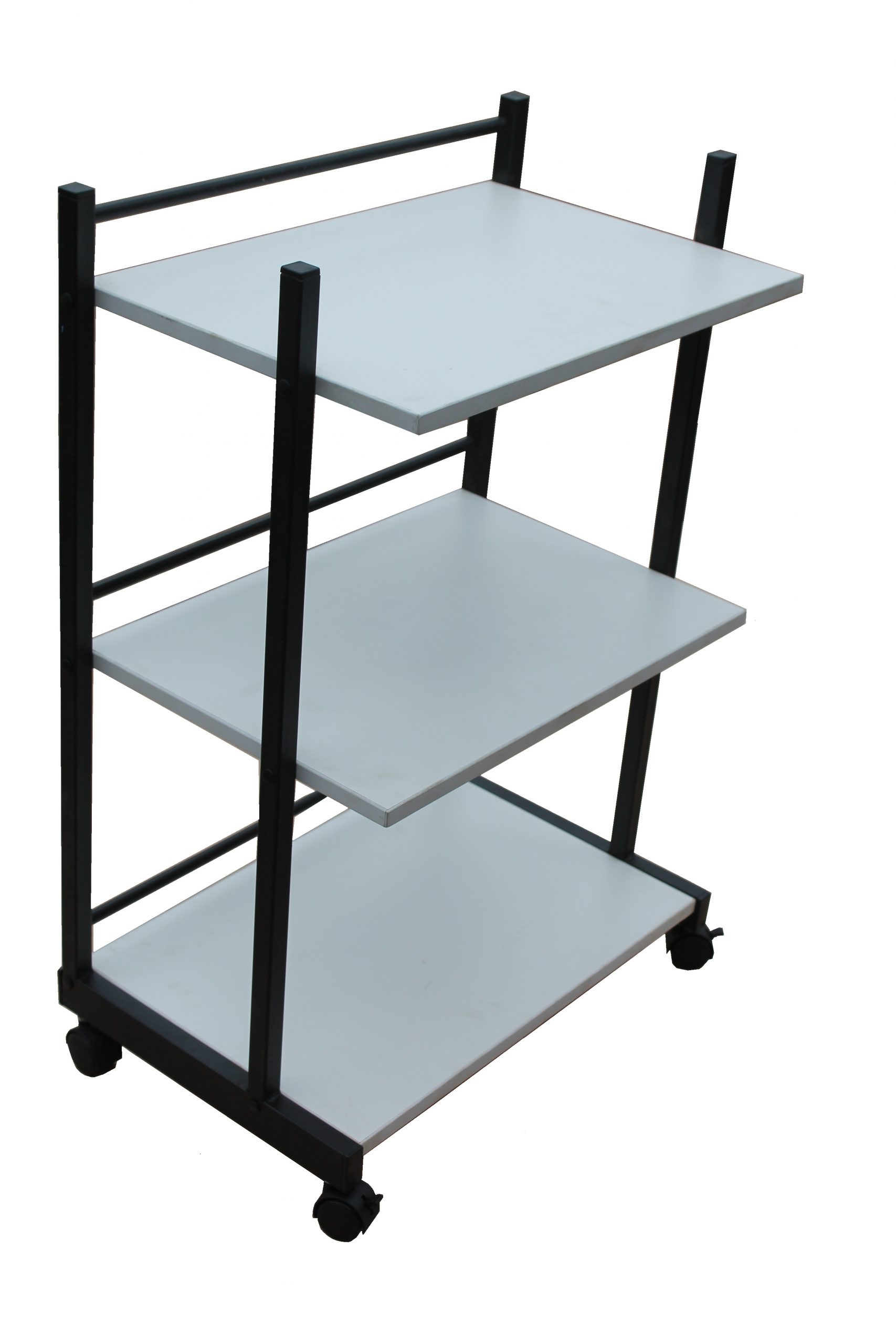 Модель имеет три уровня для размещения необходимых для работы мастера принадлежностей. Например, на нижнем ярусе можно хранить препараты, а на верхнем — те предметы и инструменты, которыми специалист пользуется чаще всего, поскольку они будут находиться в максимальной доступности.