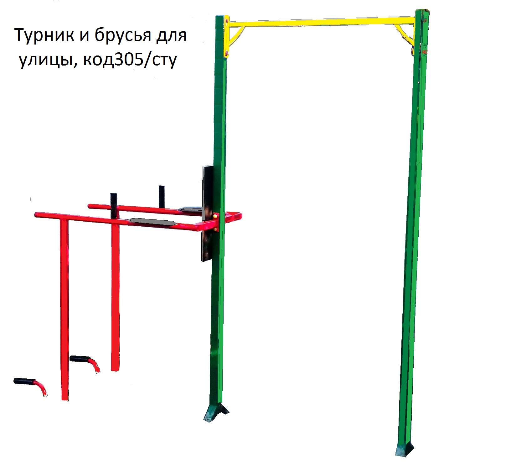 Спортивный тренажер ― турник и брусья для улицы. Рекомендуемая нагрузка до 250 кг.
