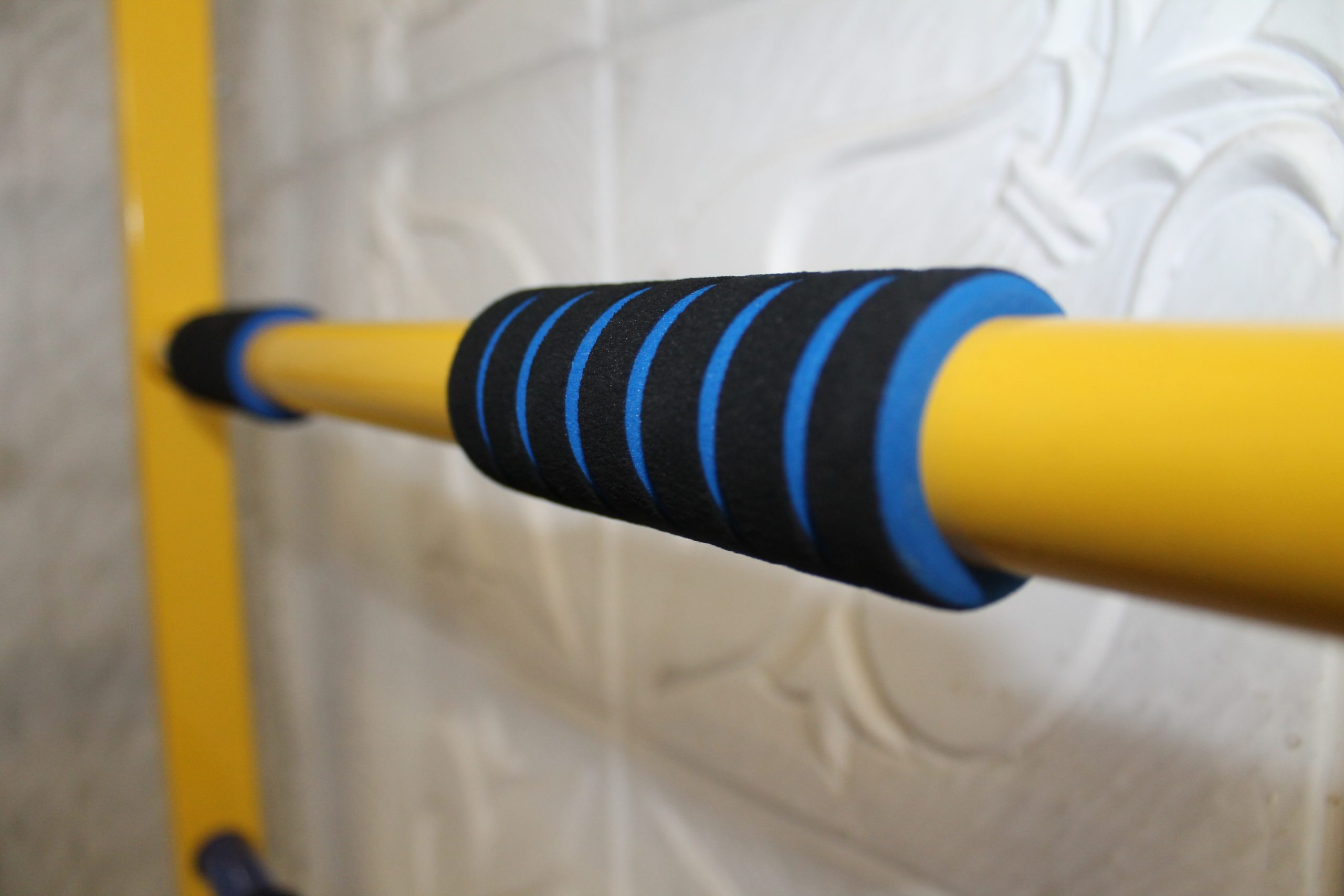 Металлические стойки и металлические перекладины с неопреновыми ручками.